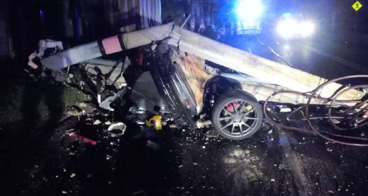 El vehículo en que se transportaba el joven Marino Adrian impactó un poste del tendido eléctrico, en la mencionada avenida, quedando totalmente destruido y partido en pedazos.