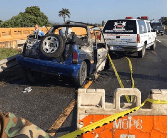 Hombre que choca con un puente en La Vega, muere calcinado en su vehiculo