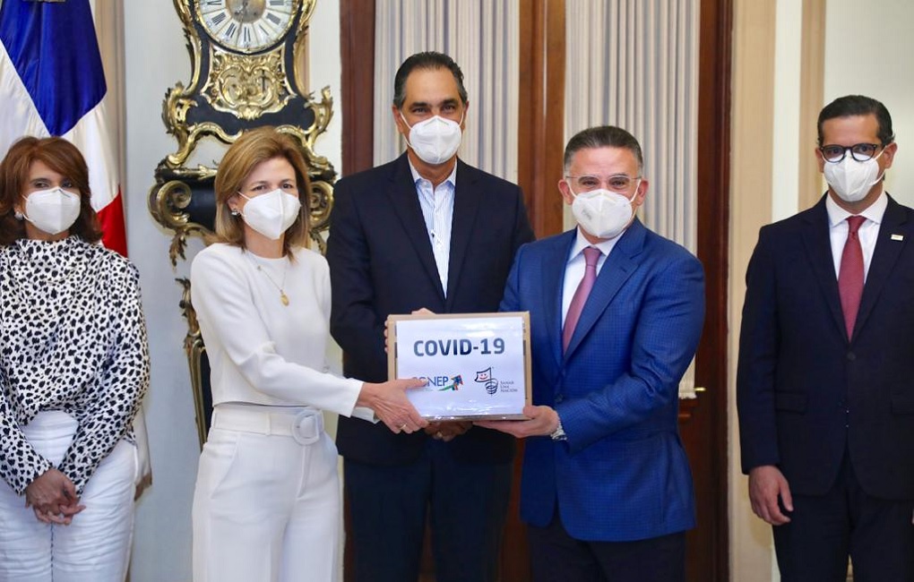 Santo Domingo, Rdherald.- El Gabinete de Salud, encabezado por la Vicepresidenta de la República, Raquel Peña recibió insumos de protección sanitarios de parte del Consejo Nacional de la Empresa Privada (CONEP), a través de la alianza empresarial Sanar una Nación, como un aporte para la mitigación, prevención y contención del Covid-19 en República Dominicana.