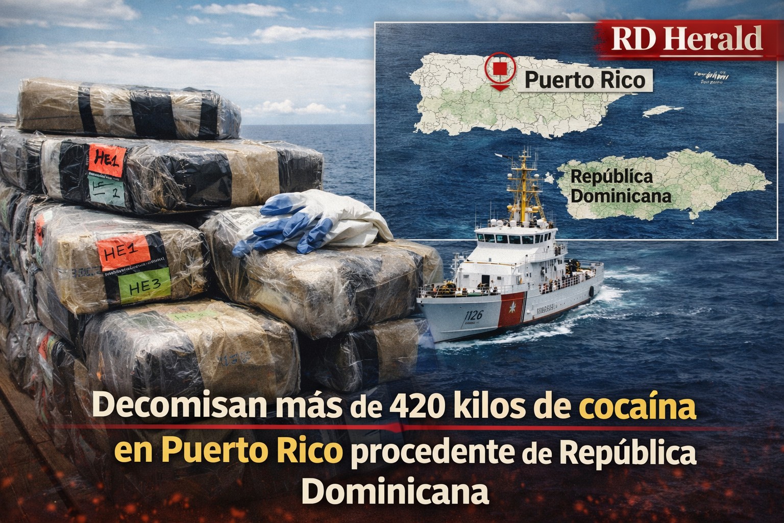 San Juan, Puerto Rico, RD Herald. — Autoridades federales y locales confiscaron este miércoles un cargamento de más de 420 kilogramos de cocaína en un operativo efectuado en aguas jurisdiccionales de Puerto Rico, informaron fuentes oficiales.