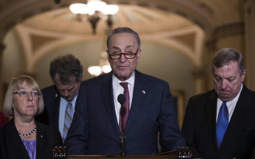 El senador por Nueva York está en una situación delicada. El ala más izquierdista de su partido cuestiona su estrategia en el pulso presupuestario con Donald Trump y los legisladores republicanos.