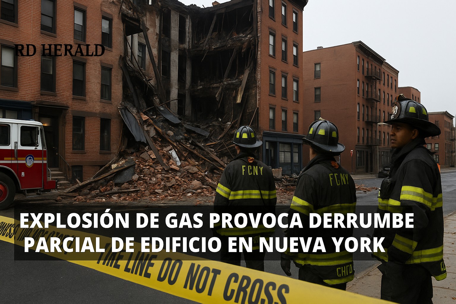 Nueva York, RD Herald. – Una fuerte explosión causada por una presunta fuga de gas provocó este sábado el derrumbe parcial de un edificio residencial en la ciudad de Nueva York, dejando un saldo preliminar de heridos, evacuaciones y un amplio despliegue de los equipos de emergencia.