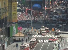 Caos hoy al medio dia en Times Square por un auto...