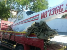 Retiene una avioneta que se quedo sin combustible y la transportaban...