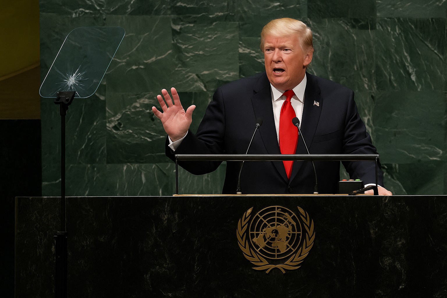 Visita de Trump a la ONU marcada por incidentes en escalinata y teleprónter
